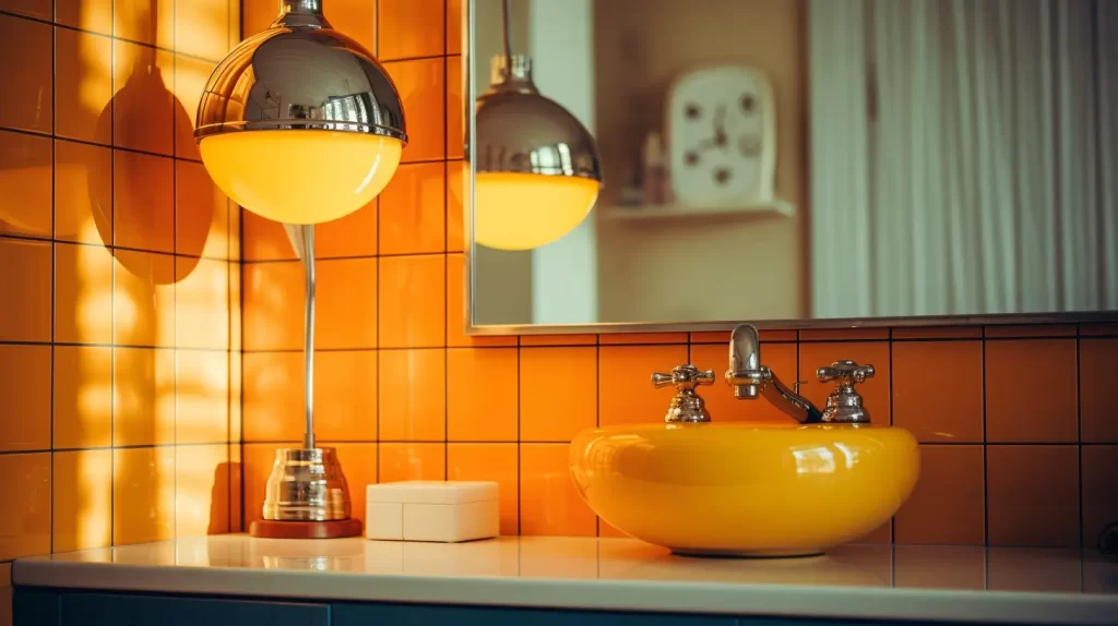 A iluminação adequada pode fazer toda a diferença na atmosfera retrô do seu banheiro. Opte por luminárias que exalem charme vintage, como arandelas com influências art déco ou luminárias pendentes com um toque de modernismo dos anos 50. Uma iluminação suave e calorosa pode criar uma atmosfera aconchegante que aprimora o ambiente retrô geral.