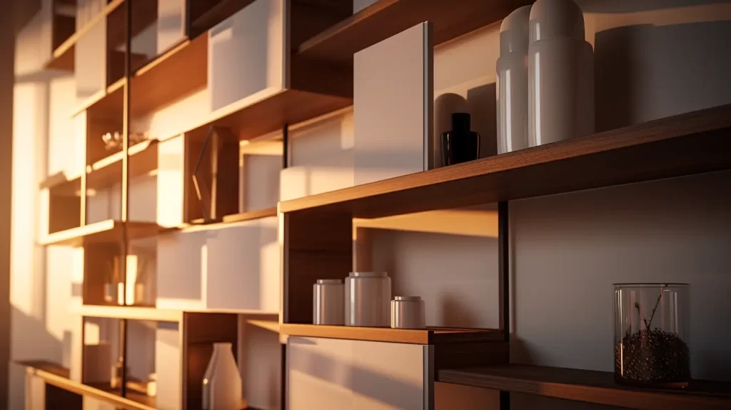 Prateleiras modulares podem ser personalizadas para se encaixar em qualquer espaço disponível. Elas podem servir como estantes de livros, espaço para plantas, ou até mesmo como divisórias de ambientes, agregando estilo e funcionalidade ao seu quarto.
