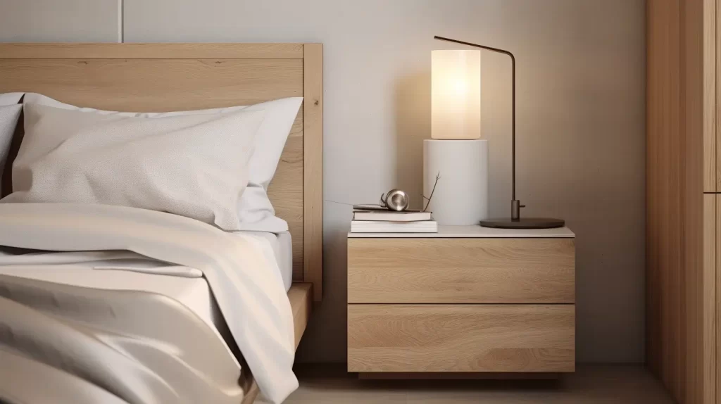 Uma mesa de cabeceira tradicional pode oferecer espaço limitado de armazenamento. Opte por uma mesa de cabeceira com gavetas para guardar livros, eletrônicos, ou outros itens pessoais, mantendo a superfície da mesa livre para lâmpadas ou decoração.
