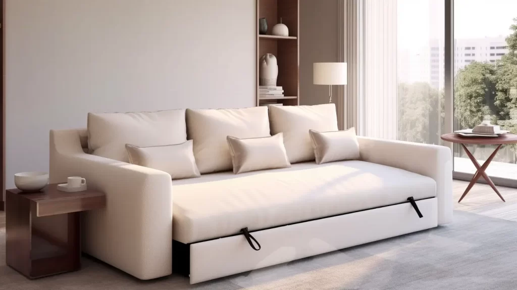 Um sofá-cama é um investimento inteligente para quartos de casal que também servem como sala de estar. Durante o dia, ele oferece um lugar confortável para sentar, e à noite, se transforma em uma cama aconchegante para hóspedes.