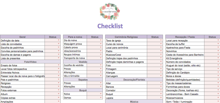Bônus: Planilha de organização geral de casamento